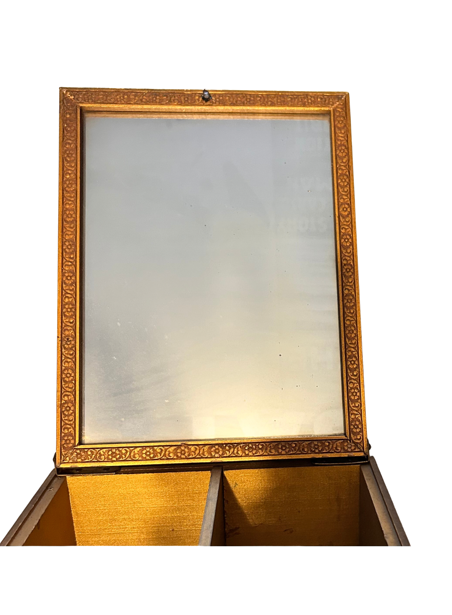 Vintage 1920s–40s Gold Gilt Wooden Jewelry Box w/ Framed Rococo Print & Mirror – Antique Dresser Box
